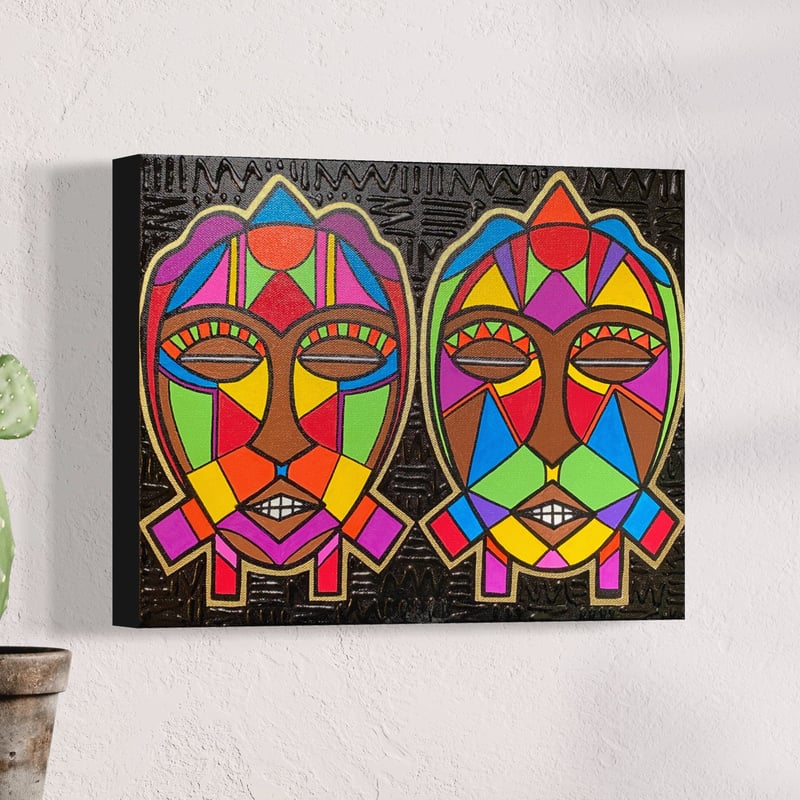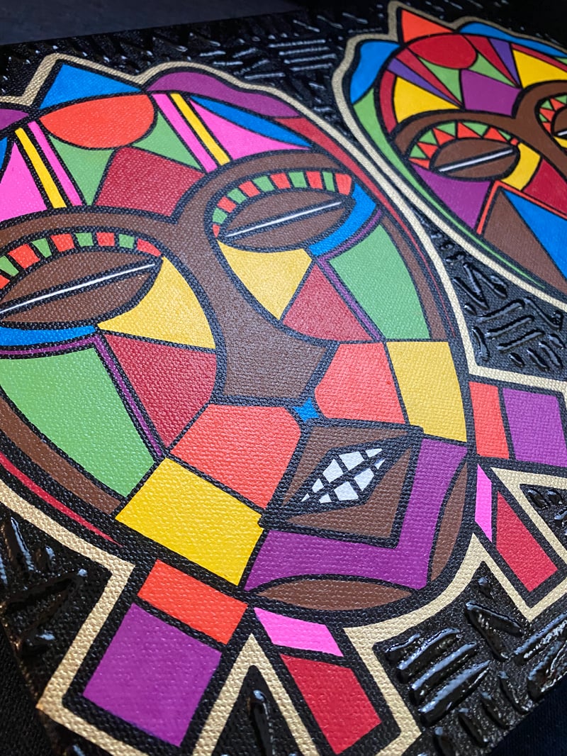 ORIGINAL 3D Textured 11inx14in Acrylic and oil based pen “Mask Pair No. 4”