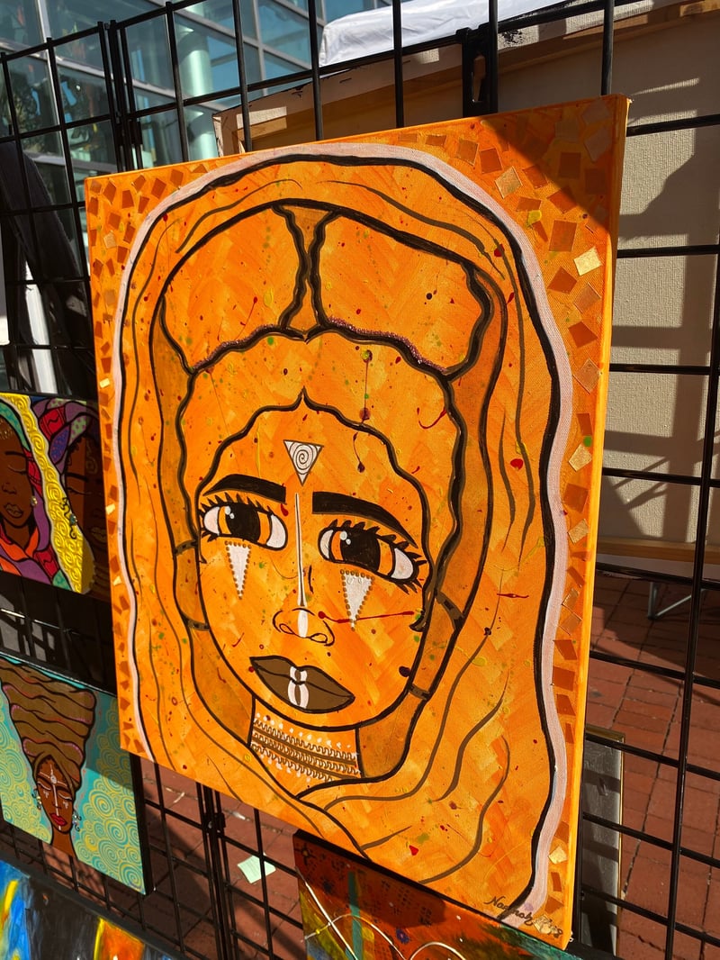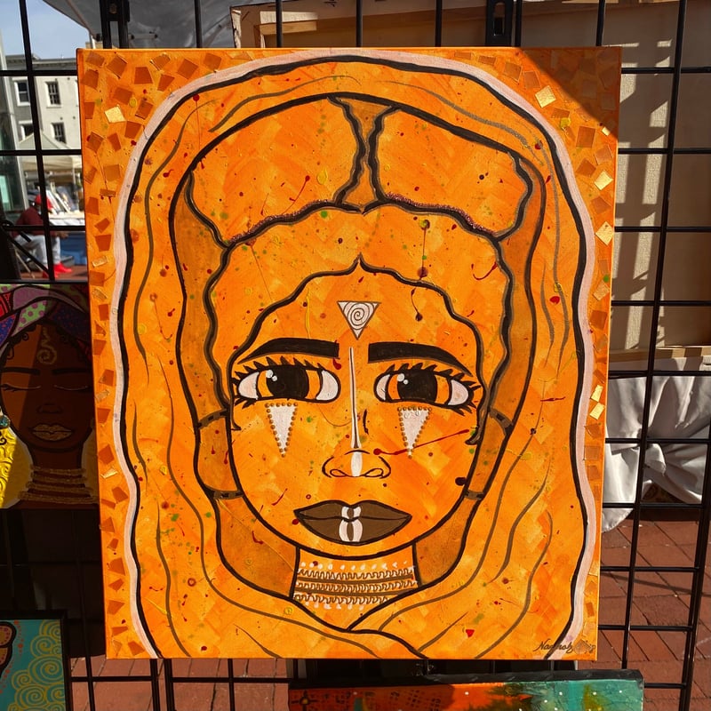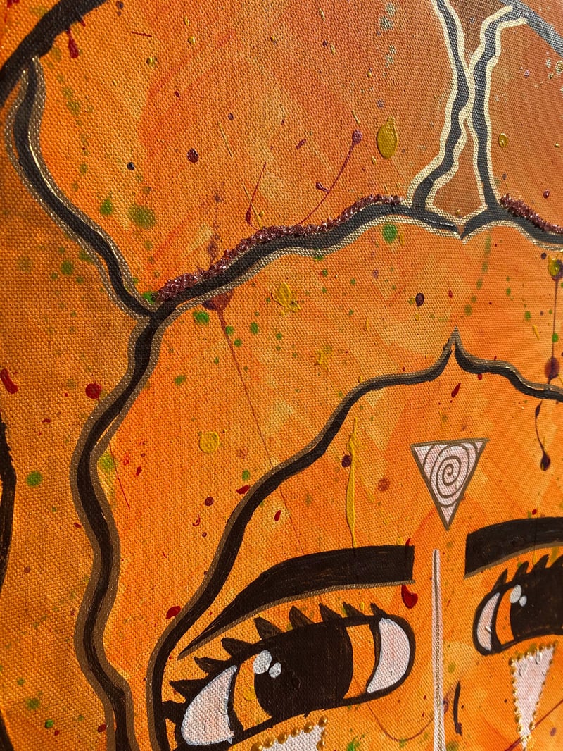 Original painting Made with Acrylic, fabric and oil based paints. Painted on stretched Canvas.