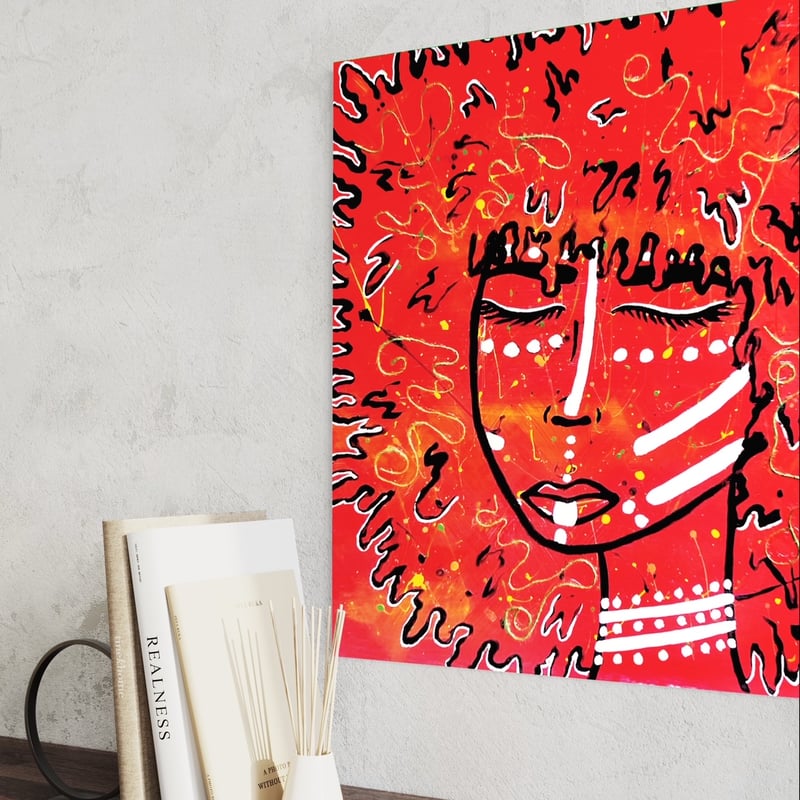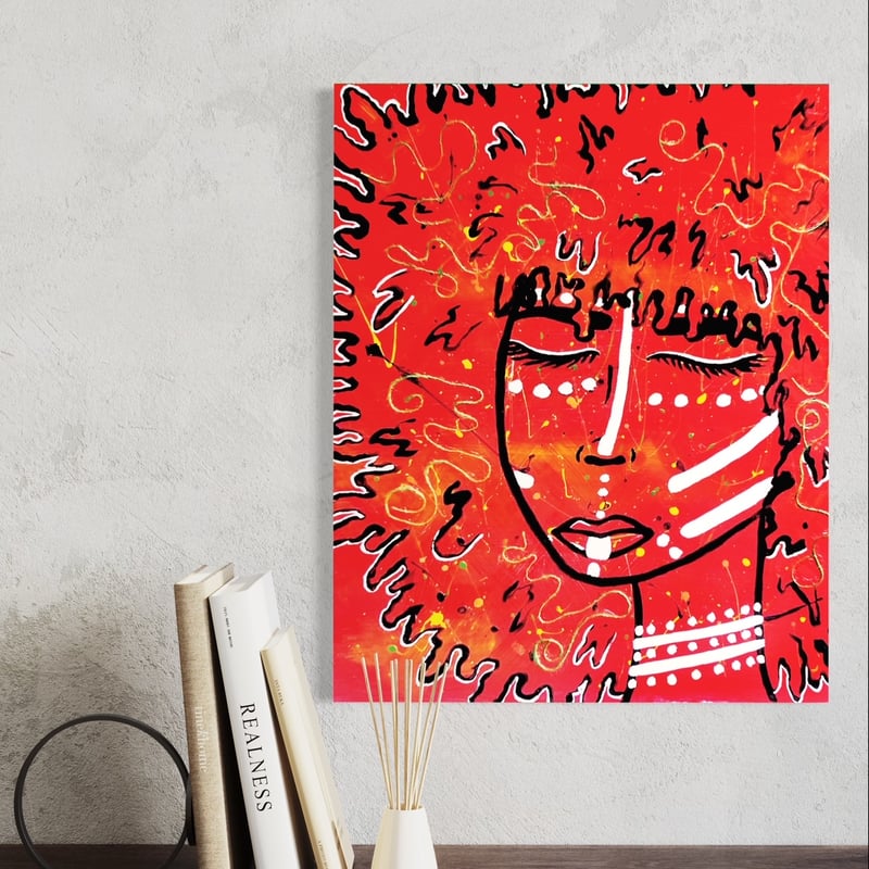 This painting is apart of a "Chakra Series" where each painting represents a different chakra. This is the "Root Chakra" or Muladhara in Sanskrit.